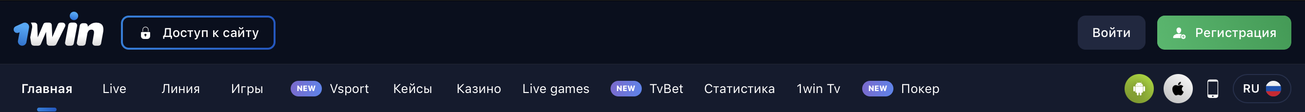 Вверху на стартовой странице 1Win расположено главное меню, в котором содержатся следующие разделы:
